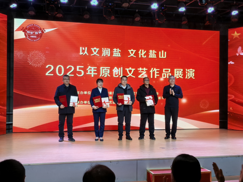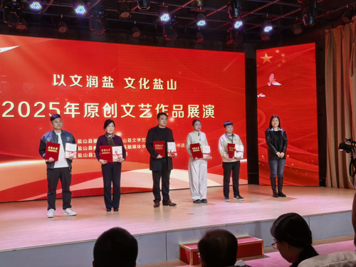 12月5日,由盐山县委宣传部、县文联、县教育局、县融媒体中心及盐山县新华书店共同主办,县文艺志愿者协会承办的“以文润盐 文化盐山”2025年原创文艺作品展演活动在县融媒体中心演播厅圆满落幕。