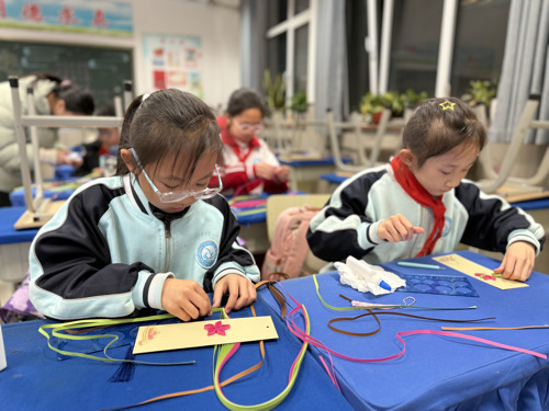故事讲完,动手环节正式开启!工作人员为同学们分发了提前准备好的木棒、算珠等材料,详细讲解算盘的结构原理、制作步骤和注意事项。“拼框架要对齐,串算珠要整齐,粘横梁要牢固”,在耐心指导下,同学们兴致勃勃地投入创作,小心翼翼地拼接、串连、粘贴,每一个步骤都做得格外认真。当亲手制作的算盘完成,大家纷纷尝试“拇指下拨、食指上挑”的操作,清脆的拨珠声中,传统计算工具的精妙之处被深深感知。