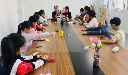 布艺手作体验区,老师向孩子们讲解香囊的历史渊源和制作要点,介绍艾叶、薄荷等草本香料的功效与搭配。孩子们在老师的悉心指点下,认真裁剪、缝制,一个个寓意吉祥、香气清雅的的作品渐渐成形。